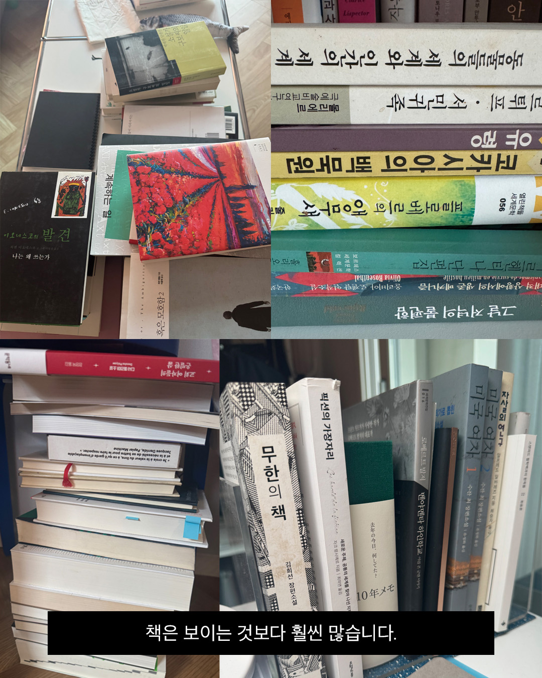 내놓은 책들에 대한 도슨트를 한유주 소설가가 직접 진행합니다. 오후 3시부터 1시간가량 이어질 예정이에요. 한유주 소설가의 책 사연을 듣고 반하신다면 그 자리에서 책을 낚아채시면 됩니다!