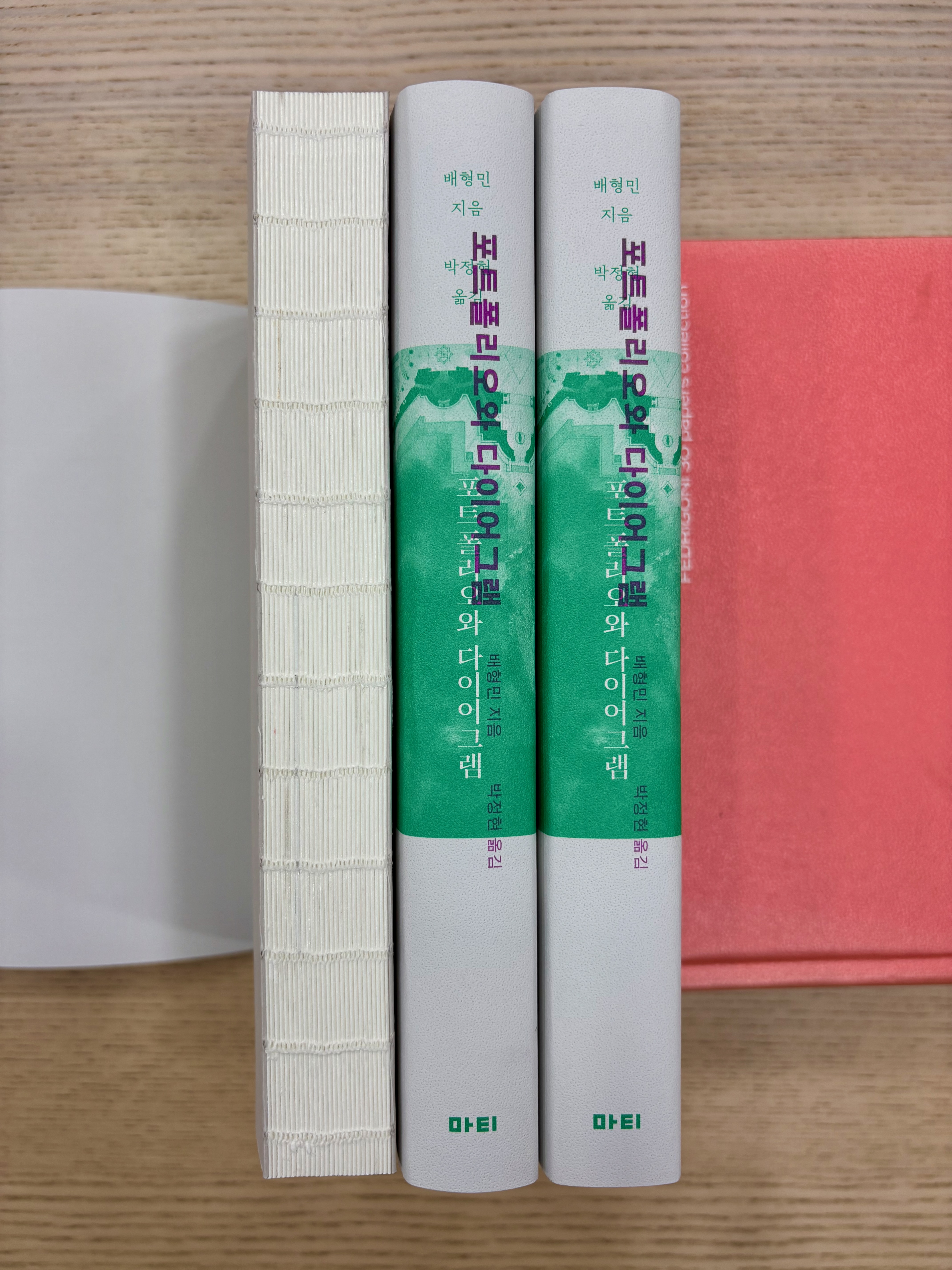 본문 안쪽 여백을 최대한 활용해 조판했기 때문에 책을 180도로 쫙 펼쳐야만 읽을 수 있어 노출사철을 택했습니다. 독특한 디자인이 아니라 확실한 기능을 위한 선택이었고, 곁표지까지 얌전히 씌워서 노출 사철인데 노출이 안 됩니다.😇 |